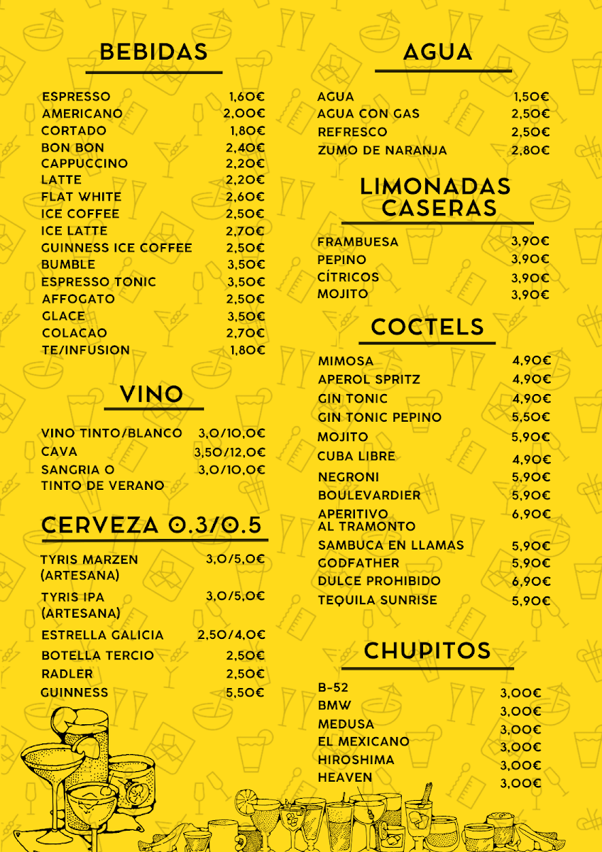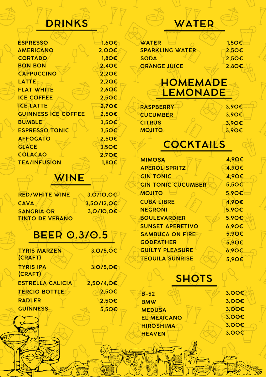 Overall, the menu is structured around categories of coffee, light food such as bagels and wraps, and a selection of beer, offering guests a balanced mix of beverages and light meals.