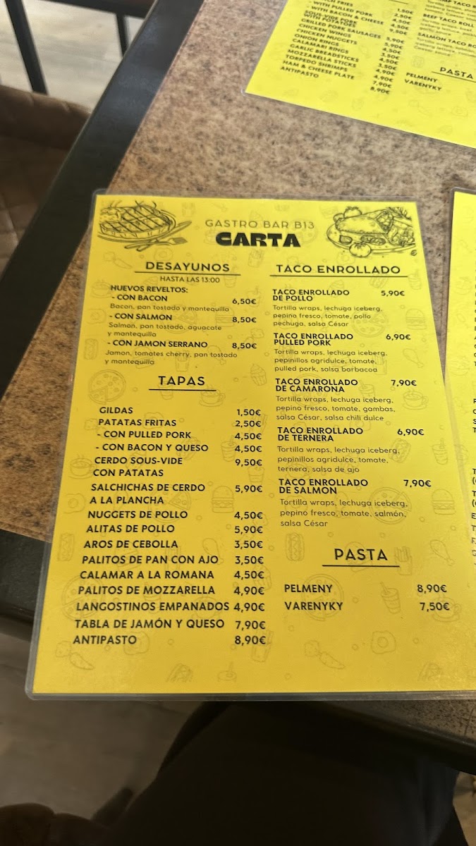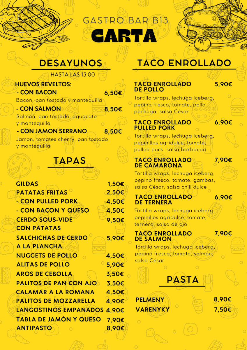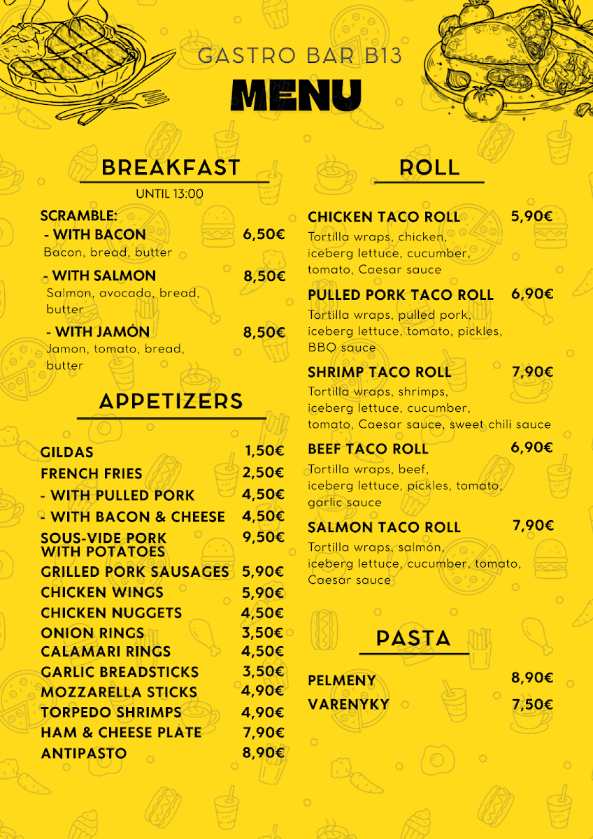 GASTRO BAR B13. Menu